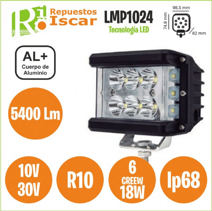 Foco de trabajo fabricado en Aluminio con tecnología LED.