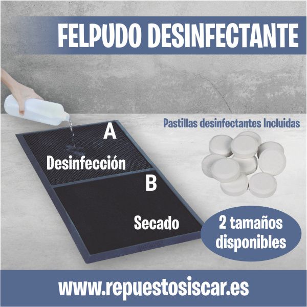 - Diluir 1 pastilla cada litro y medio de agua y verter en la zona A de desinfección del felpudo, donde se encuentran las púas