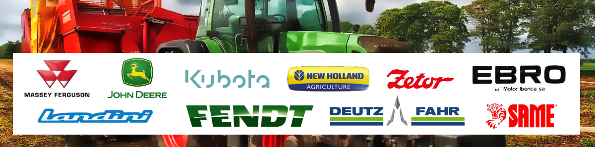 Algunas de las marcas de tractores que trabajamos, MASEY FERGUSON, KUBOTA, EBRO, DEUTZ, FENDT, JHON DEERE, DEUTZ FAHR, NEW HOLLAND, SAME, ZETOR, LANDINI, …